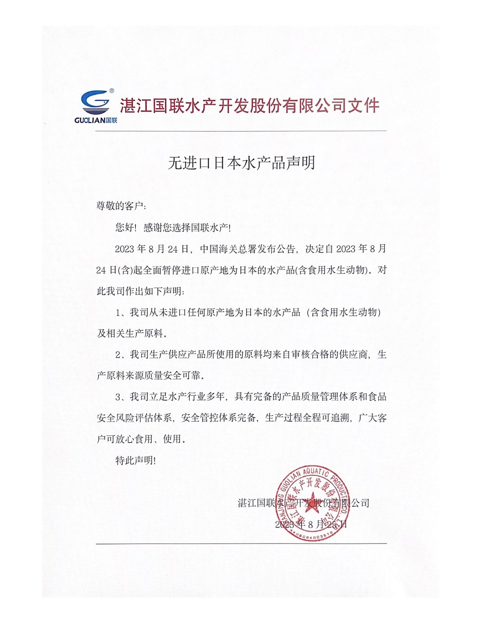 无进口日本水产品声明.pdf